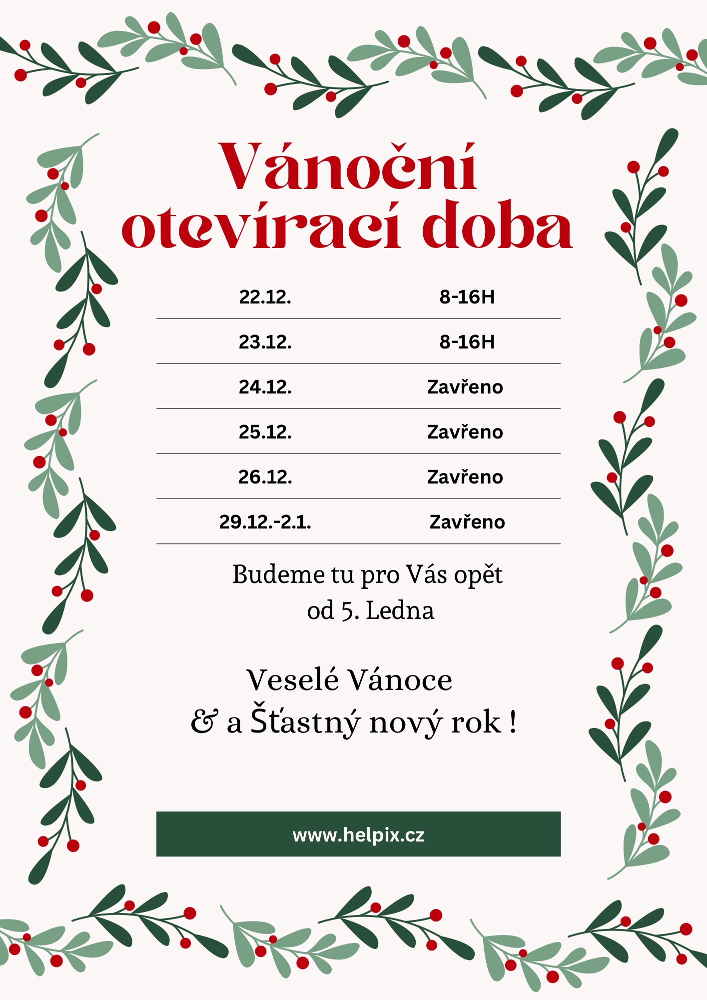 Od 24.12 do 5.1.2026 zavřeno, dovolená. Objednávky budou zasílány až 5.1